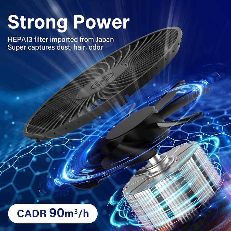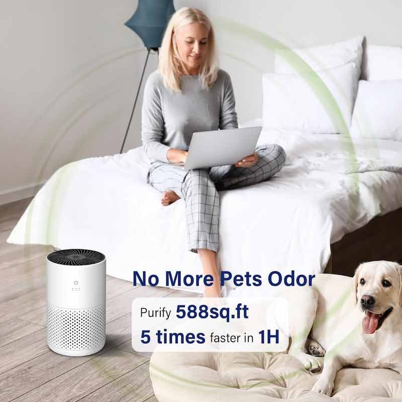 1.HEPA Air Purifier:Air purifier with HEPA filter purify air per hour in 588sq.ft/54.6m², air purifier working only takes 30 minutes to purify a 294 sq.ft/27.3m² room. The air cleaner for home has versatility such as air purifier for dust, air purifier for allergies, air purifier for smoke, air purifier for mold and best air purifier for pets.