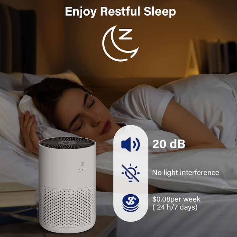 3.Low Noise Lever Air Purifier for Room:When you are sleeping, the noise level is 25db.