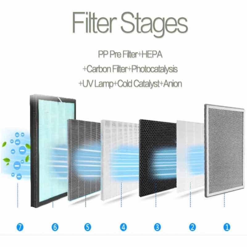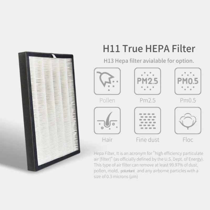 1. Three Layers of Activated Carbon HEPA Filter:table top air cleaner eliminates pathogens down to 0.3 microns.It can remove 99.99 percent of PM2.5 particles, can effectively adsorb formaldehyde, remove second-hand smoke, dust.