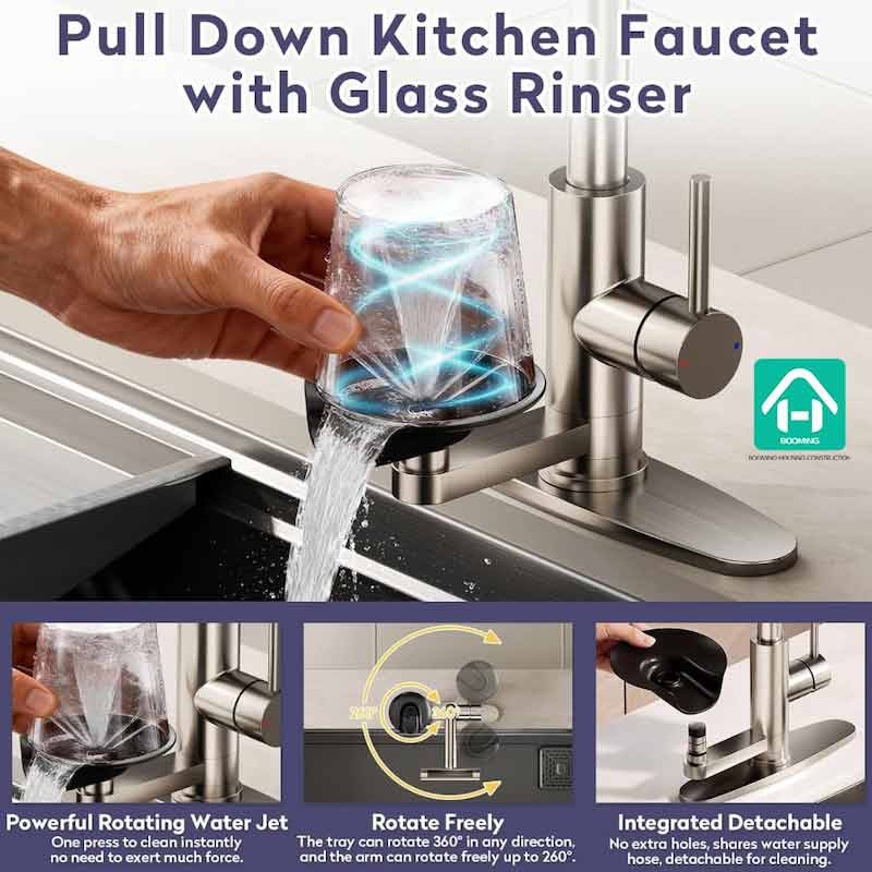 Wholesale Pull Down Kitchen Faucet with Glass Rinser Waterfall Kitchen Faucet Best Rated Pull Down Kitchen faucet
