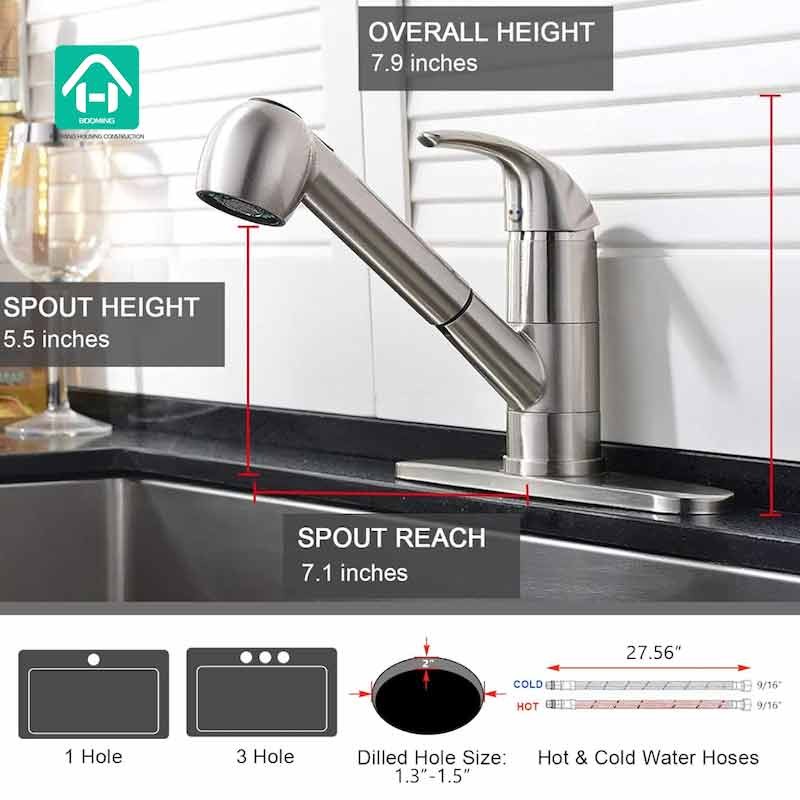 Feature of Kitchen Faucet:Stream Mode and Spraying Mode, Lead Free, Kitchen Faucet with Sprayer Pull-out Spray