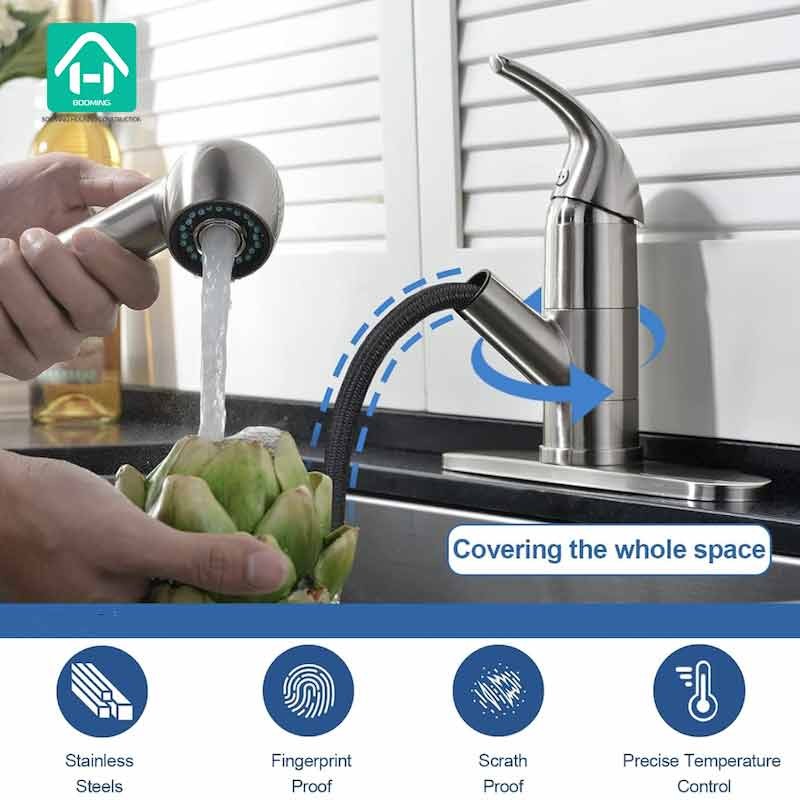 Feature of Kitchen Faucet:Stream Mode and Spraying Mode, Lead Free, Kitchen Faucet with Sprayer Pull-out Spray