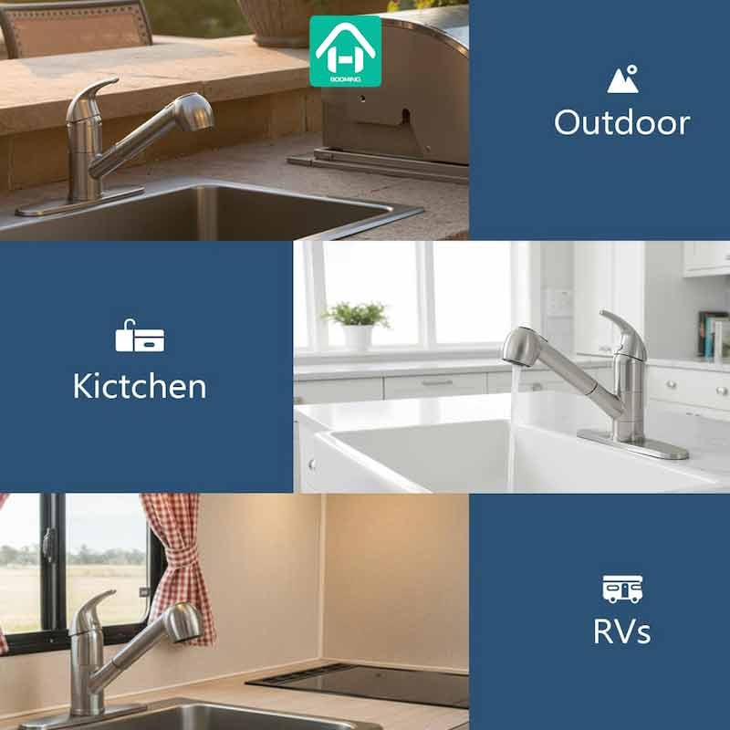 As a famous kitchen faucet with sprayer manufacturer in China ,our company has been exported kitchen faucets sprayer for nearly over 8 years. We mainly export to north American countries such as Amazon sellers or offline sellers.We have rich experience in cooperating with Amazon sellers and help to paste any barcodes on package or carton.