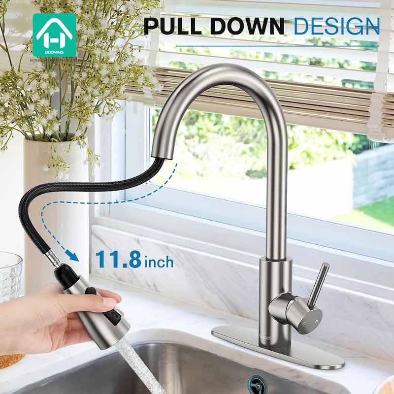 Feature of Single Handle Pull Down Sprayer Kitchen Faucet:360 Swivel, Lead Free, Anti-leakage, Pull Down Sprayer, Pull Out Sprayer